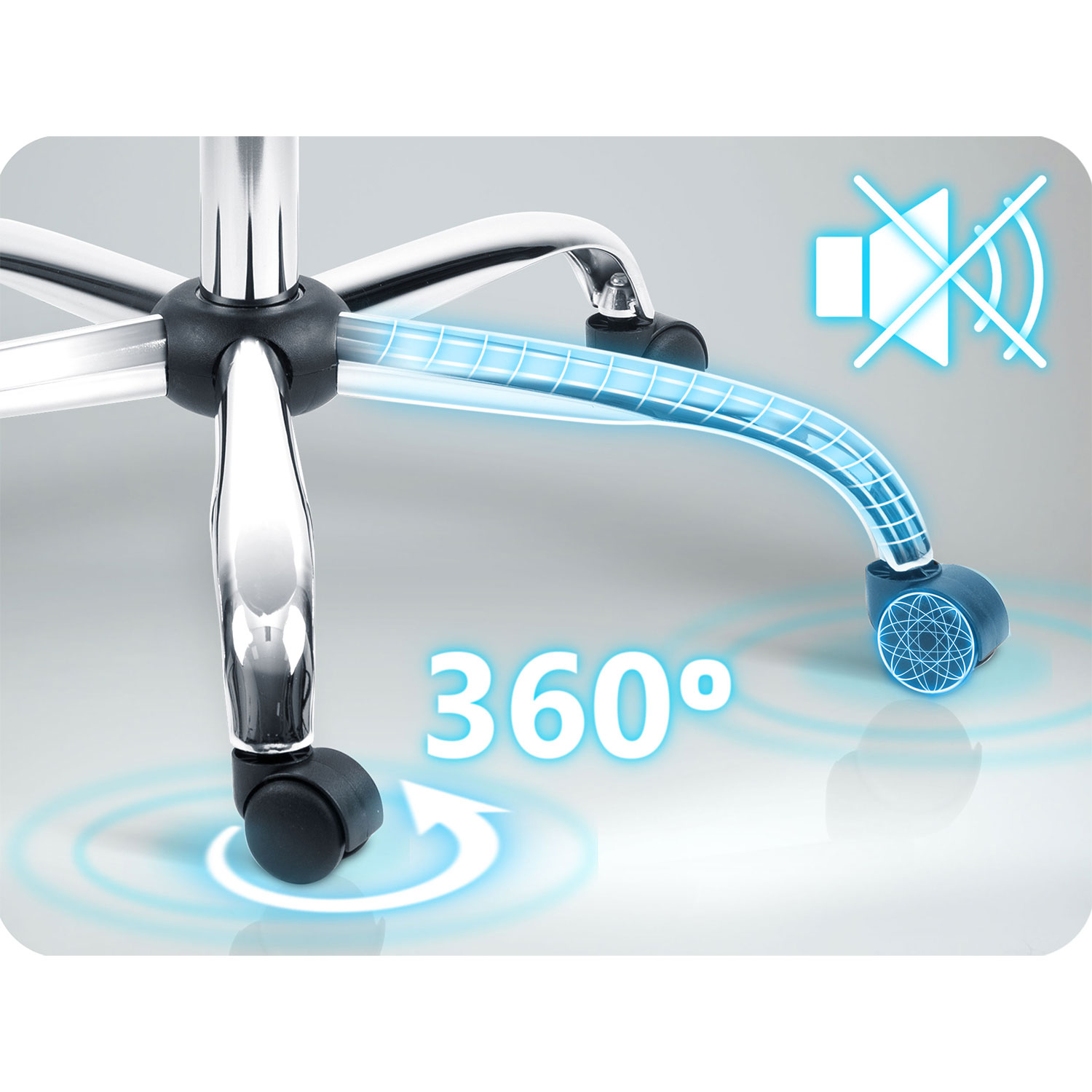 Mocna chromowana podstawa i ciche powlekane kółka