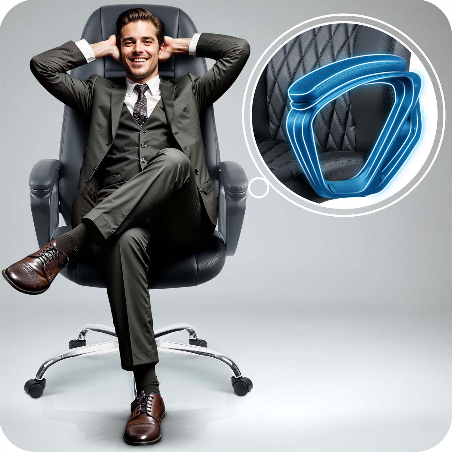 Wystarczy lekko odchylić oparcie, by odciążyć kręgi, zrelaksować mięśnie i na nowo nabrać energii – nawet w trakcie długiego dnia w biurze!
