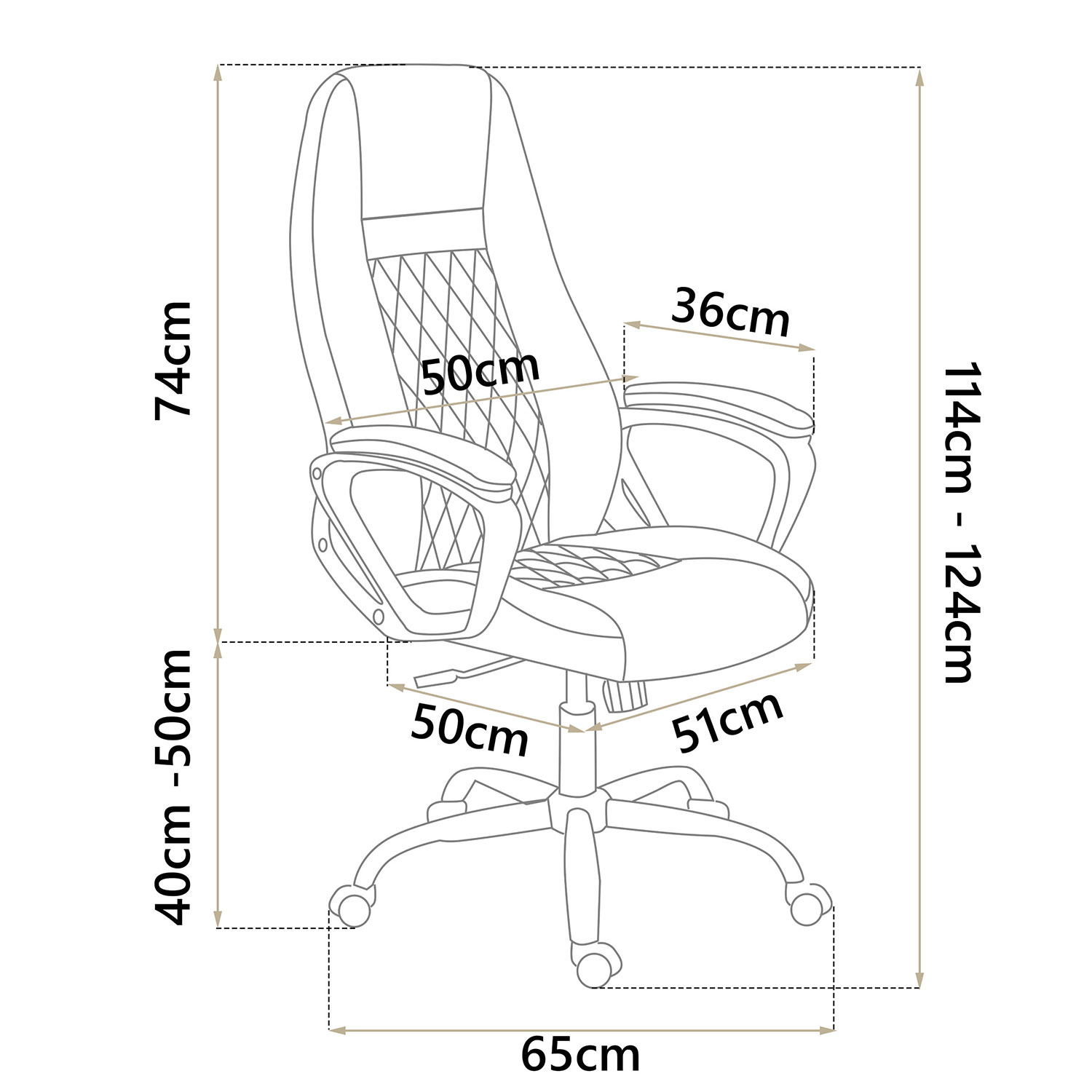 • szerokość podstawy: 65 cm,